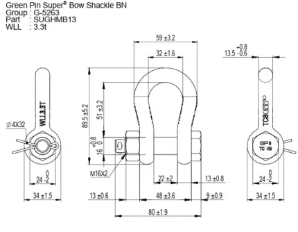 A manilha G-5263, modelo curva parafuso e porca, grau 8 de alta qualidade possui corpo e pino forjados em aço de alta resistência, com tratamento de superfície e gravação da rastreabilidade (número de lote). Fator de segurança 5:1 de acordo com as normas EN 13889, ASME B30.26, Fed. Spec. RR-C-271*** Tipo IVB Classe 3, grau A. Acompanha certificado de qualidade/testes e manual de instrução