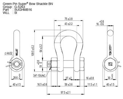 A manilha G-5263, modelo curva parafuso e porca, grau 8 de alta qualidade possui corpo e pino forjados em aço de alta resistência, com tratamento de superfície e gravação da rastreabilidade (número de lote). Fator de segurança 5:1 de acordo com as normas EN 13889, ASME B30.26, Fed. Spec. RR-C-271*** Tipo IVB Classe 3, grau A. Acompanha certificado de qualidade/testes e manual de instrução