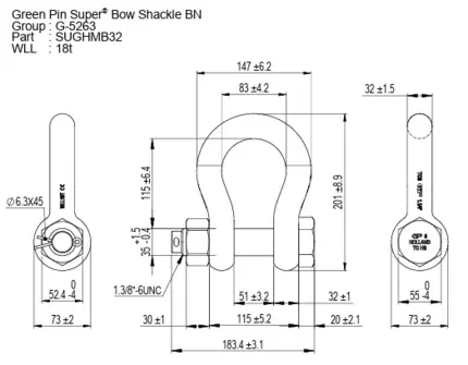 A manilha G-5263, modelo curva parafuso e porca, grau 8 de alta qualidade possui corpo e pino forjados em aço de alta resistência, com tratamento de superfície e gravação da rastreabilidade (número de lote). Fator de segurança 5:1 de acordo com as normas EN 13889, ASME B30.26, Fed. Spec. RR-C-271*** Tipo IVB Classe 3, grau A. Acompanha certificado de qualidade/testes e manual de instrução.
