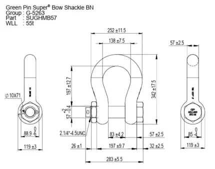A manilha G-5263, modelo curva parafuso e porca, grau 8 de alta qualidade possui corpo e pino forjados em aço de alta resistência, com tratamento de superfície e gravação da rastreabilidade (número de lote). Fator de segurança 5:1 de acordo com as normas EN 13889, ASME B30.26, Fed. Spec. RR-C-271*** Tipo IVB Classe 3, grau A. Acompanha certificado de qualidade/testes e manual de instrução.