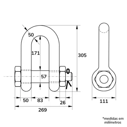 11 - Manilha Reta G-4153 G6 35000kg Parafuso/porca