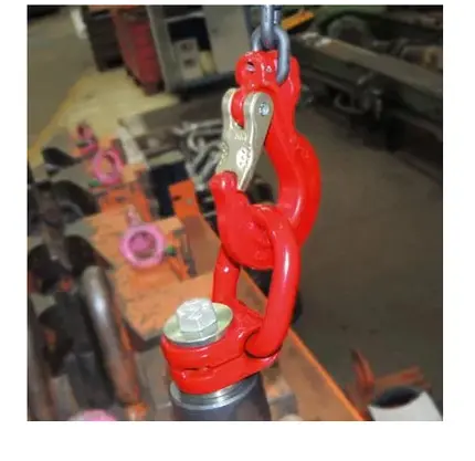 Fabricado com aço liga especial de alta qualidade, com pintura eletrostática na cor vermelha e parafuso com tratamento de superfície anticorrosão. Olhal testado com 2,5 vezes a carga de trabalho, 100% testado contra presença de trincas, fator de segurança 4:1 e de acordo com a norma EN 1677-1. Acompanha certificado de qualidade/testes e manual de instrução.
