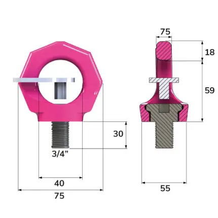Olhal Aparafusável Giratório VRS 3/4POL - 10UNC 6000kg