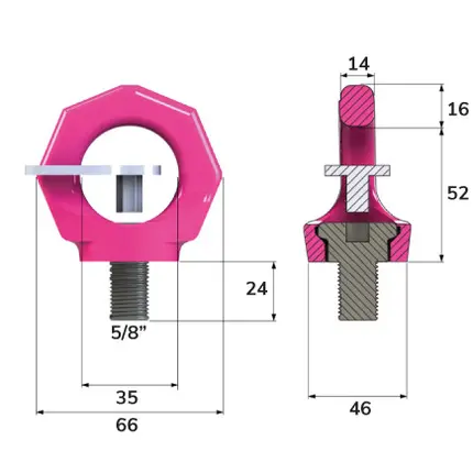 Fabricado com aço liga especial de alta qualidade e pintura eletrostática na cor pink, que indica redução de carga em função da temperatura. Gravação em alto relevo da carga de trabalho válida para a pior condição de içamento. Material testado com 2,5 vezes a carga de trabalho, 100% testado contra presença de trincas, fator de segurança 4:1 e atende norma EN 1677-1. Acompanha chave sextavada para acoplamento na carga, certificado de qualidade/testes e manual de instrução.